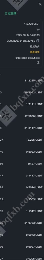 币安返佣-2025.8.14每天返佣更新,今日返佣448.42u作者: bqfxb / 2025年8月14日 6.18之后每天返佣记录以单独文章更新在返佣展示,6.18之前的返佣记录在文章返佣信息查询网站 返佣记录展示