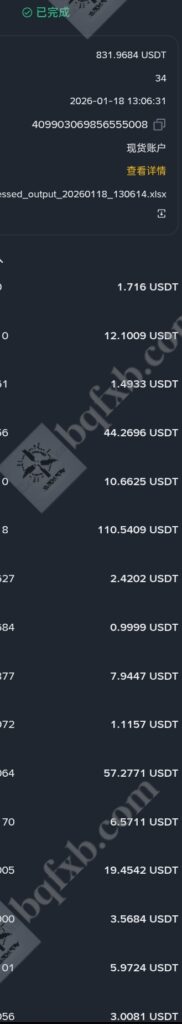 币安返佣-2026.1.18每天返佣更新,今日返佣831.96u!作者: bqfxb / 2026年1月18日 6.18之后每天返佣记录以单独文章更新在返佣展示,6.18之前的返佣记录在文章返佣信息查询网站 返佣记录展示