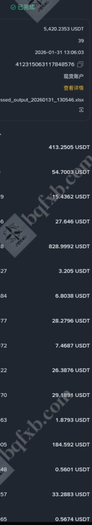 币安返佣-2026.1.31每天返佣更新,今日返佣5420.23u!作者: bqfxb / 2026年1月31日 6.18之后每天返佣记录以单独文章更新在返佣展示,6.18之前的返佣记录在文章返佣信息查询网站 返佣记录展示