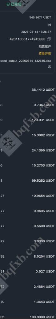 币安返佣-2026.3.14每日返佣更新,今日返佣948.00u!作者: bqfxb / 2026年3月14日 6.18之后每天返佣记录以单独文章更新在返佣展示,6.18之前的返佣记录在文章返佣信息查询网站 返佣记录展示