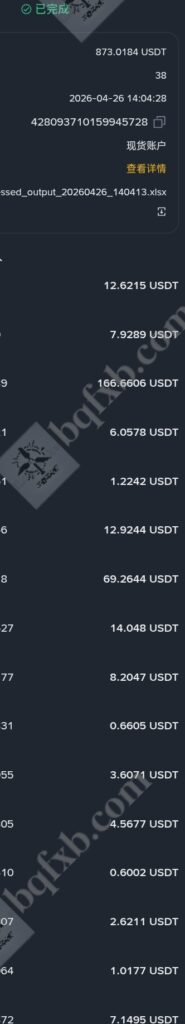 币安返佣-2026.4.26每日返佣更新,今日返佣873.01u!作者: bqfxb / 2026年4月26日 6.18之后每天返佣记录以单独文章更新在返佣展示,6.18之前的返佣记录在文章返佣信息查询网站 返佣记录展示