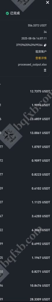 币安返佣-2025.8.6每天返佣更新,今日返佣556.33u作者: bqfxb / 2025年8月6日 6.18之后每天返佣记录以单独文章更新在返佣展示,6.18之前的返佣记录在文章返佣信息查询网站 返佣记录展示
